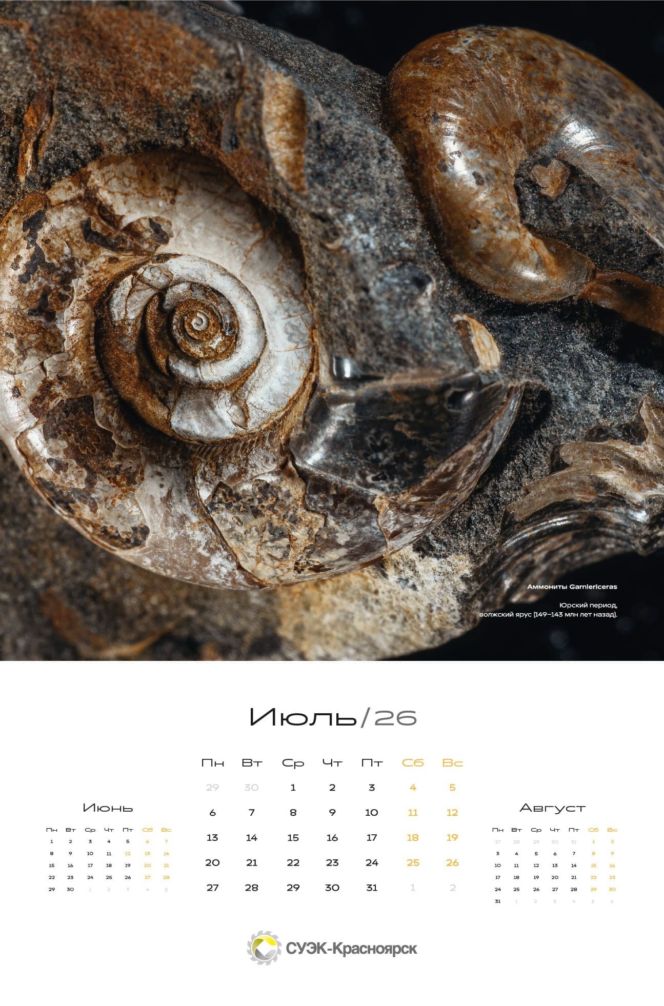 К этой красоте родной земли и ее древней истории решили привлечь внимание календарем «Ископаемая красота», сделав акцент на особом геологическом периоде – карбоновом, времени образования одного из основных источников энергии для нашей цивилизации – угля. Со времени поселения на суше первых папоротников и в течение нескольких десятков миллионов лет растения вместе с живущими в них обитателями сформировали миллиарды тонн черного золота, настоящего богатства сибирских регионов. В этом черном море угля часто проявляются разные окаменелости, на игру оттенков и гармонию которых можно смотреть вечно. Календарь, отталкиваясь от производственной тематики угольной отрасли, открывает людям окно в толщу наших недр – мощный источник красоты, которому более 300 миллионов лет.