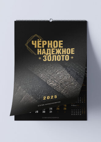 Календарь выполнен в благородном «угольном» цвете на основе производственных фотографий, от масштаба которых буквально захватывает дух.