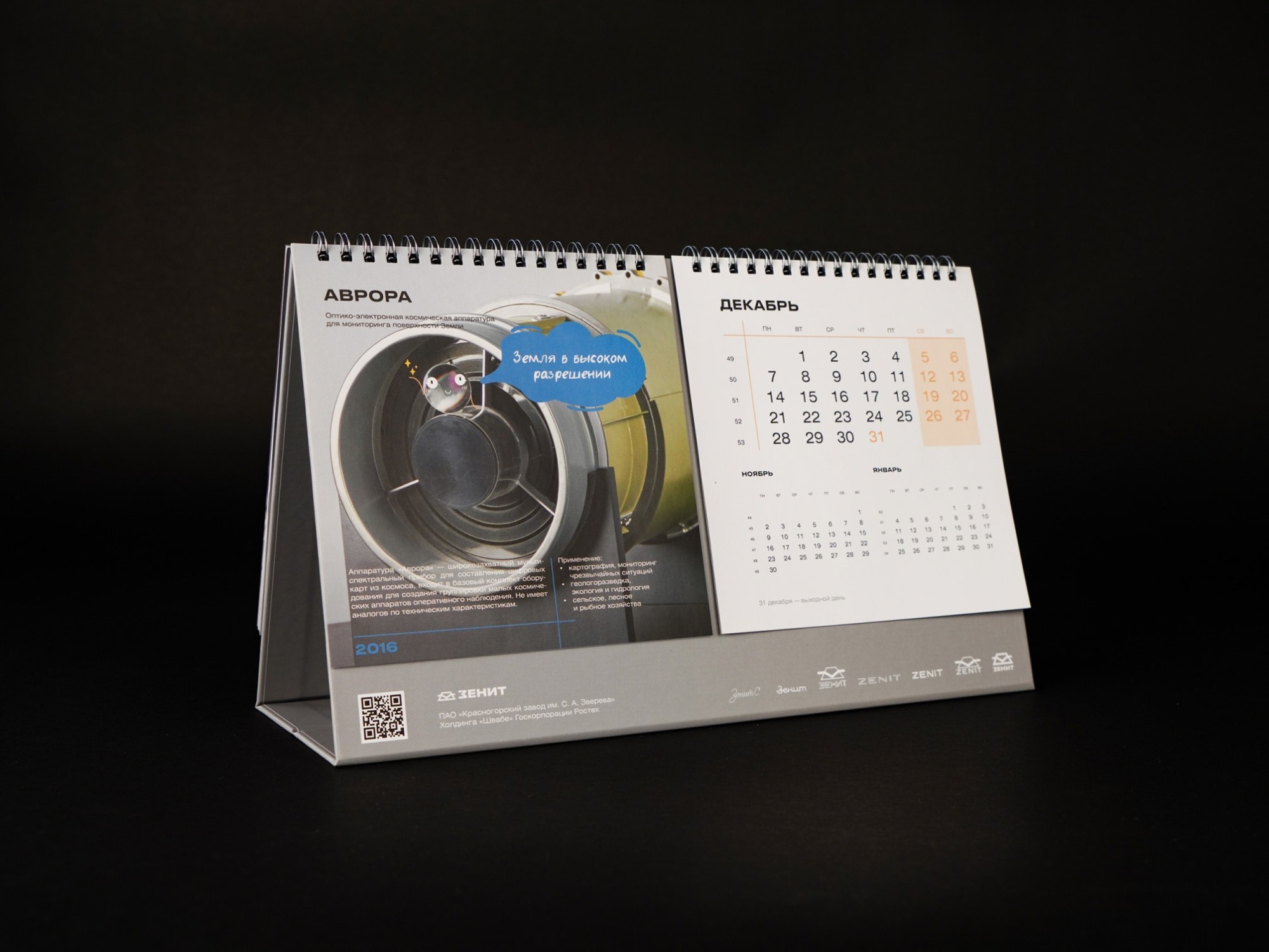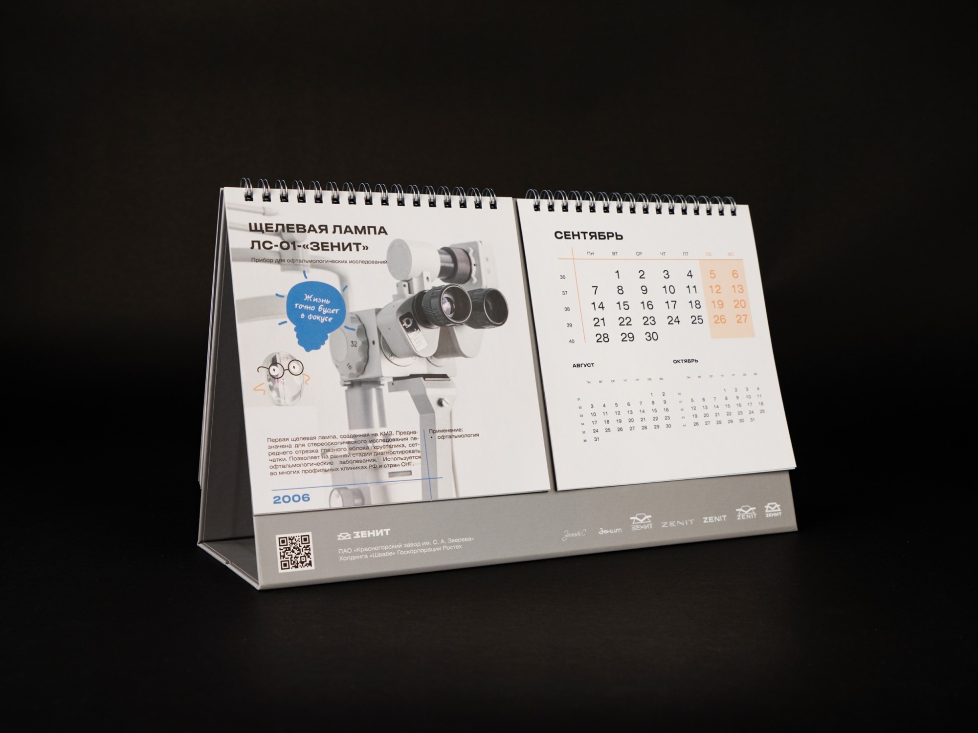 Изделия в календаре размещены от простого к сложному. Таким образом, прослеживается развитие предприятия от производства простых луп и бинокуляров до изготовления сложнейшей оптико-электронной космической аппаратуры.