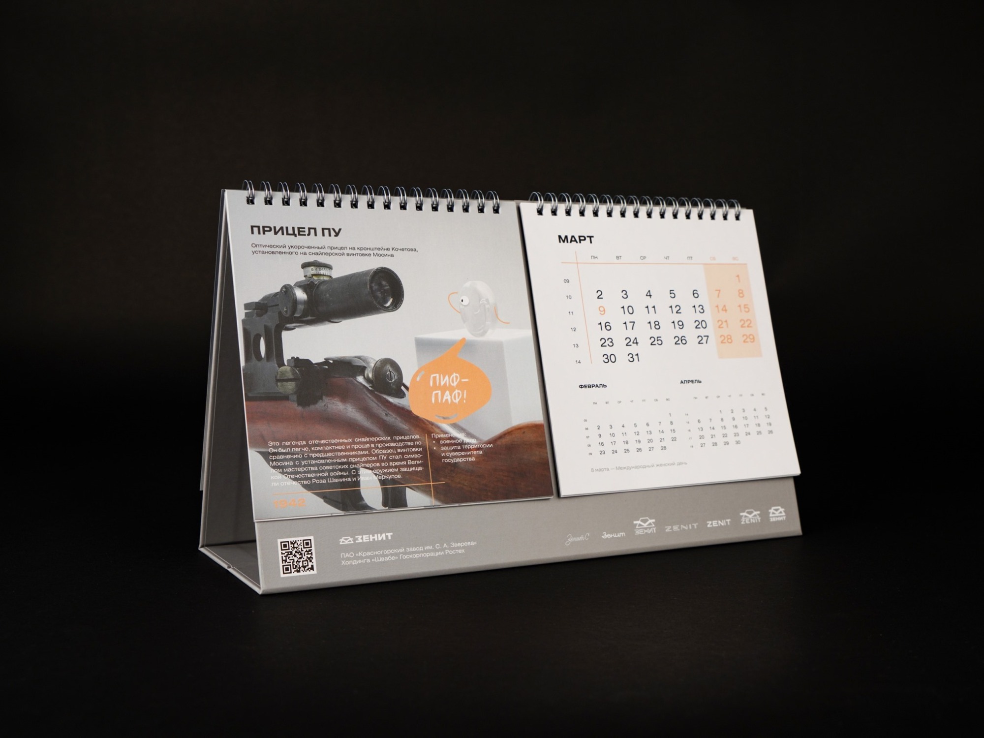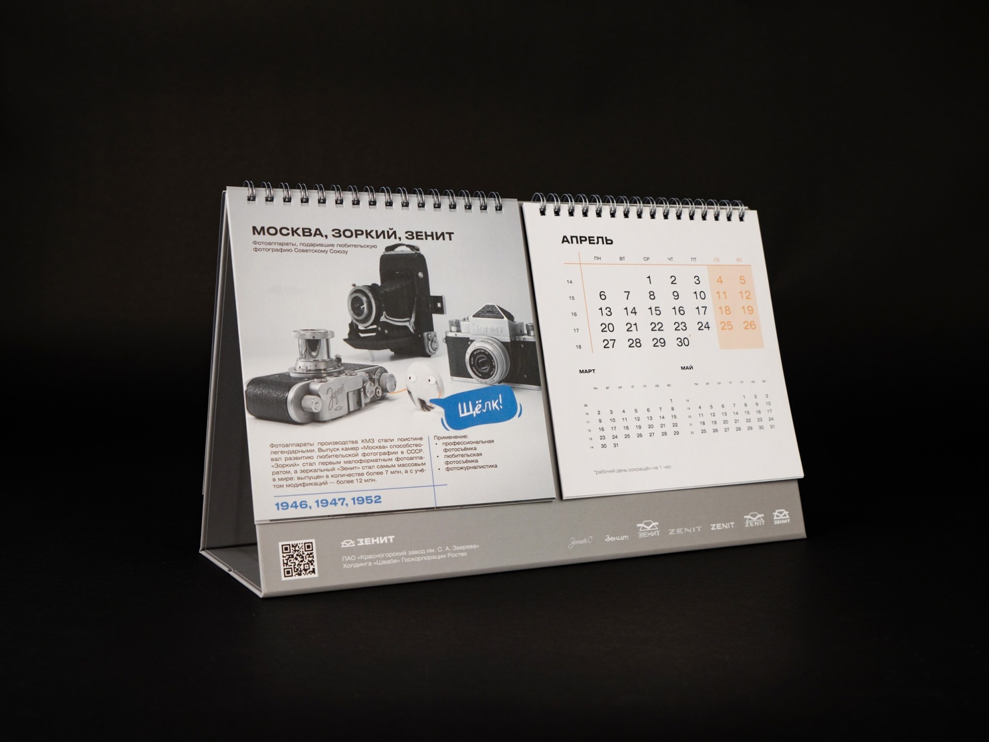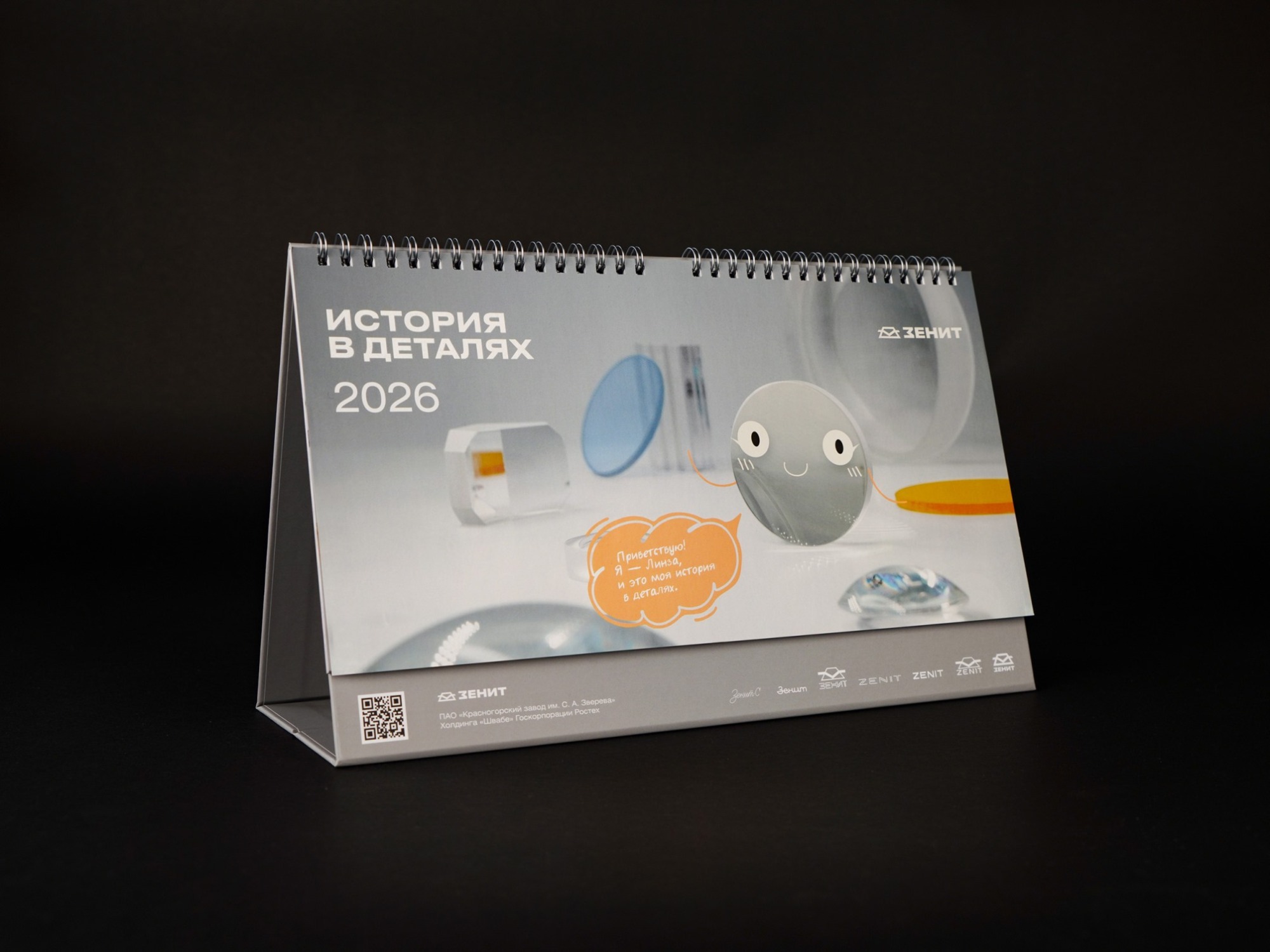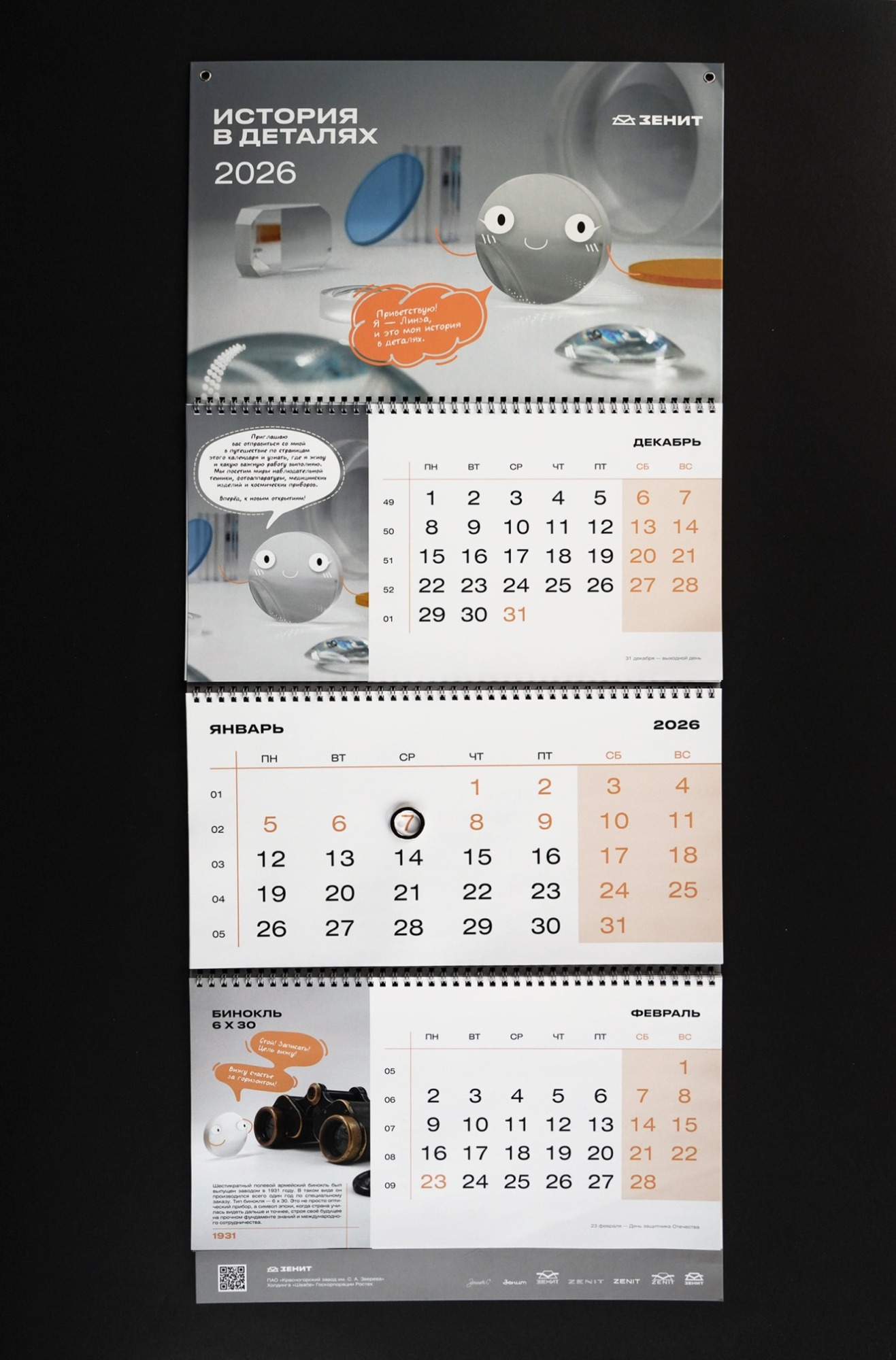 Тема календаря в 2026 году «История в деталях». В нём поквартально разбиты тематики изделий производства КМЗ: