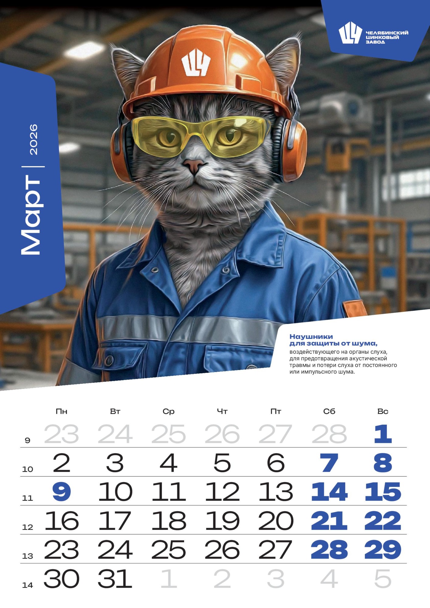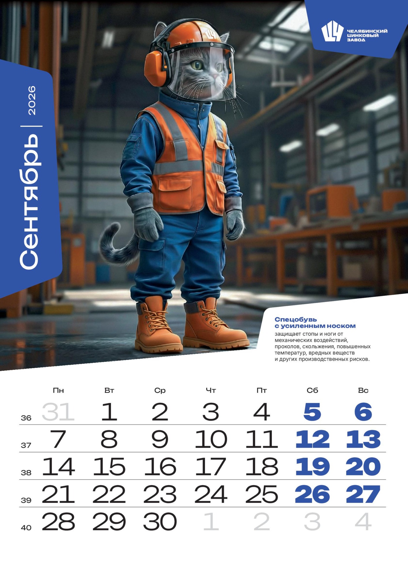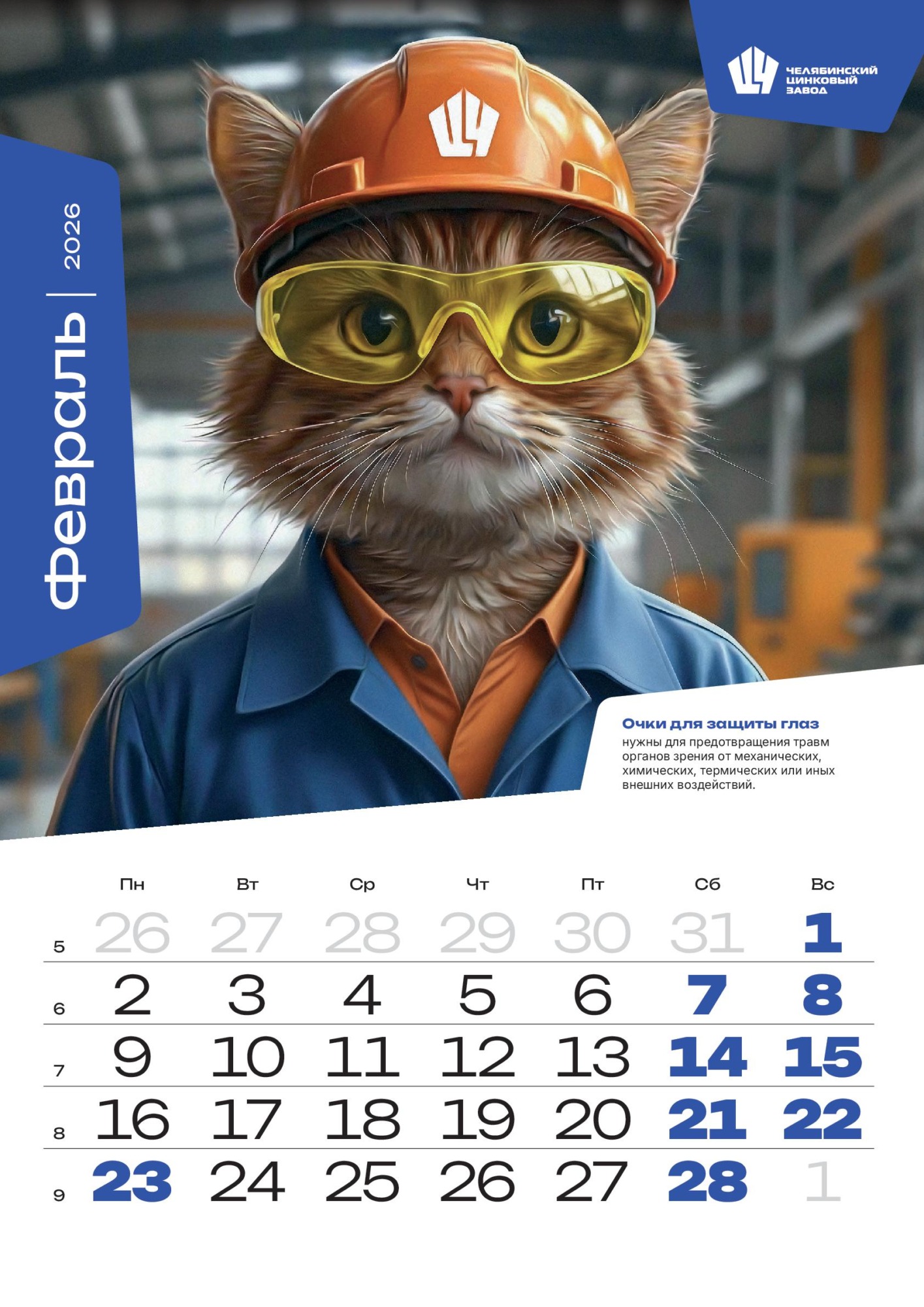 Это не просто календарь, а ежедневное напоминание о ценности человеческой жизни через призму юмора и милых образов. На каждой странице – харизматичный кот, экипированный по всем правилам: от каски и защитных очков до спецобуви и страховочной привязи.