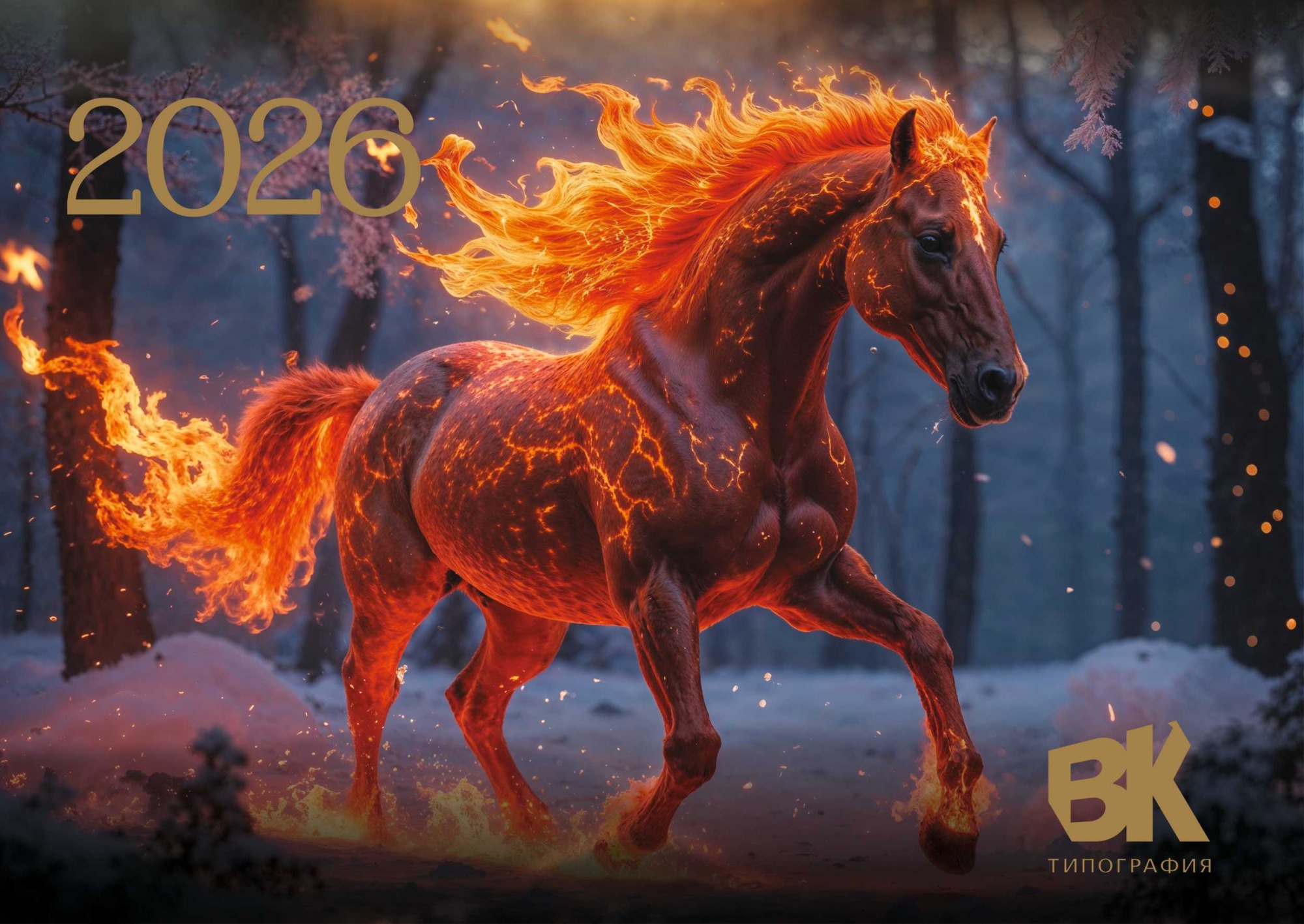 Календарь сочетает разнообразные технологии отделки: матовые и глянцевые лаки, глиттерный лак, объёмный глянец, тиснение фольгой, эффекты изморози, металлизированные картоны (серебро и голография) ,два вида ламинации – Soft-Touch и глиттер. Каждая деталь усиливает визуальное и тактильное впечатление, превращая календарь в мини-искусство.