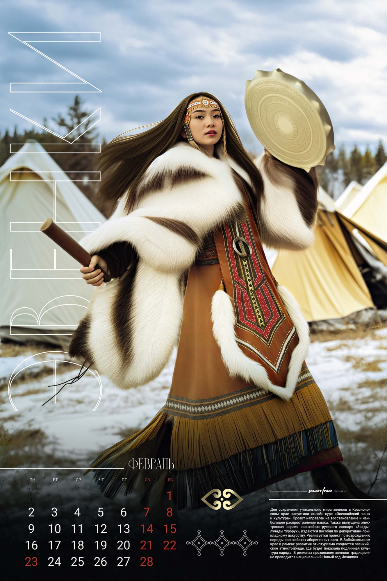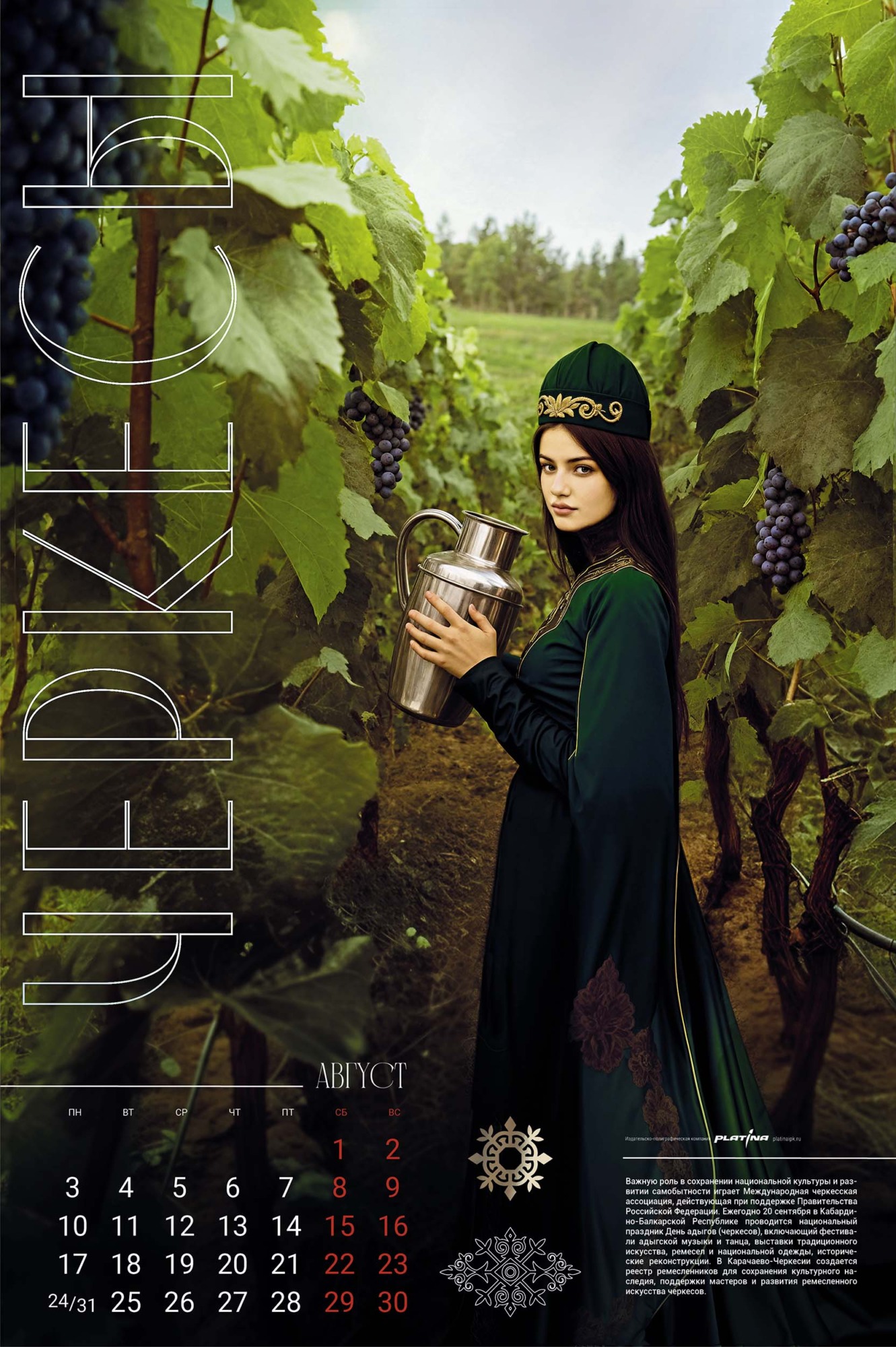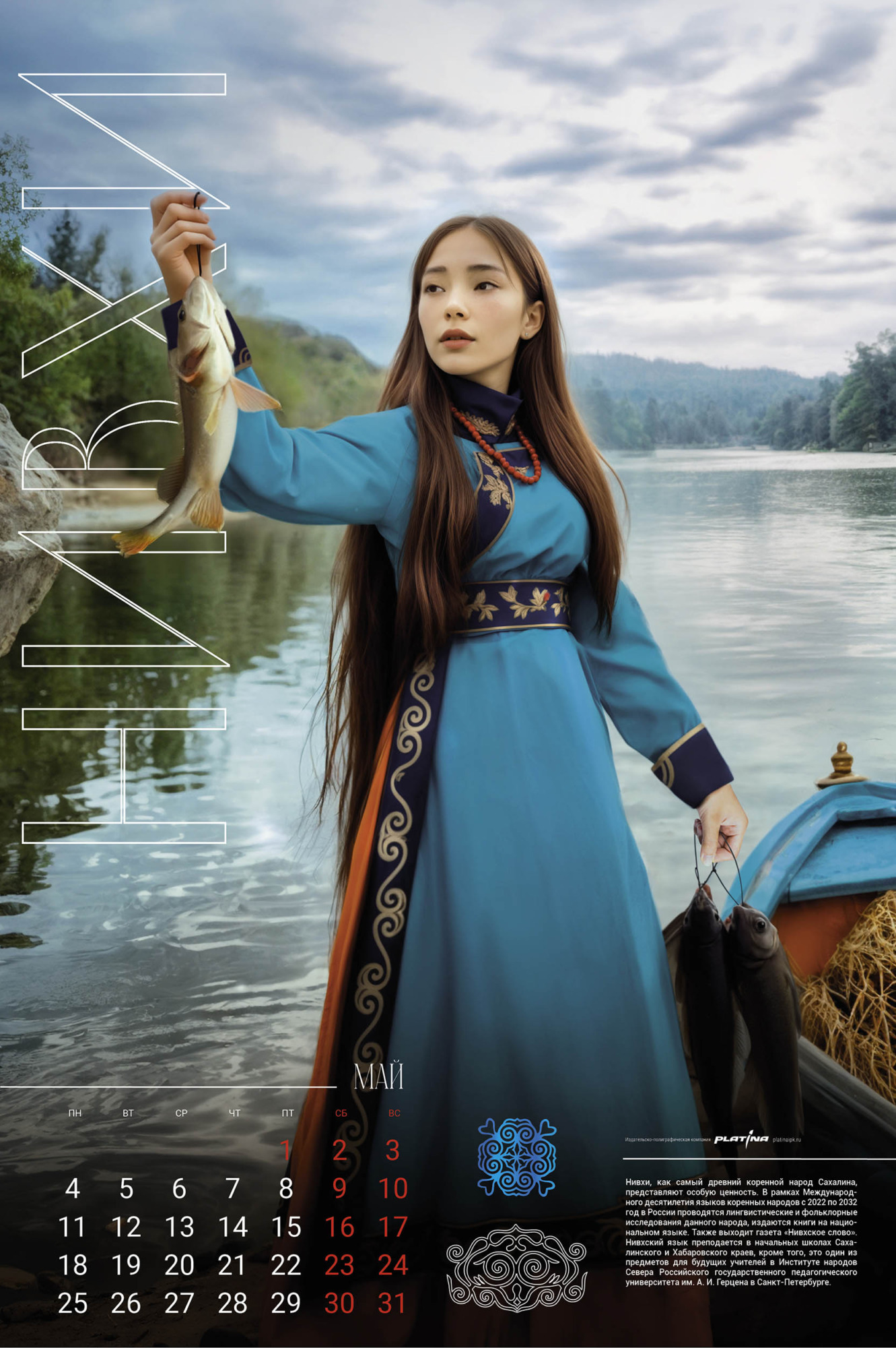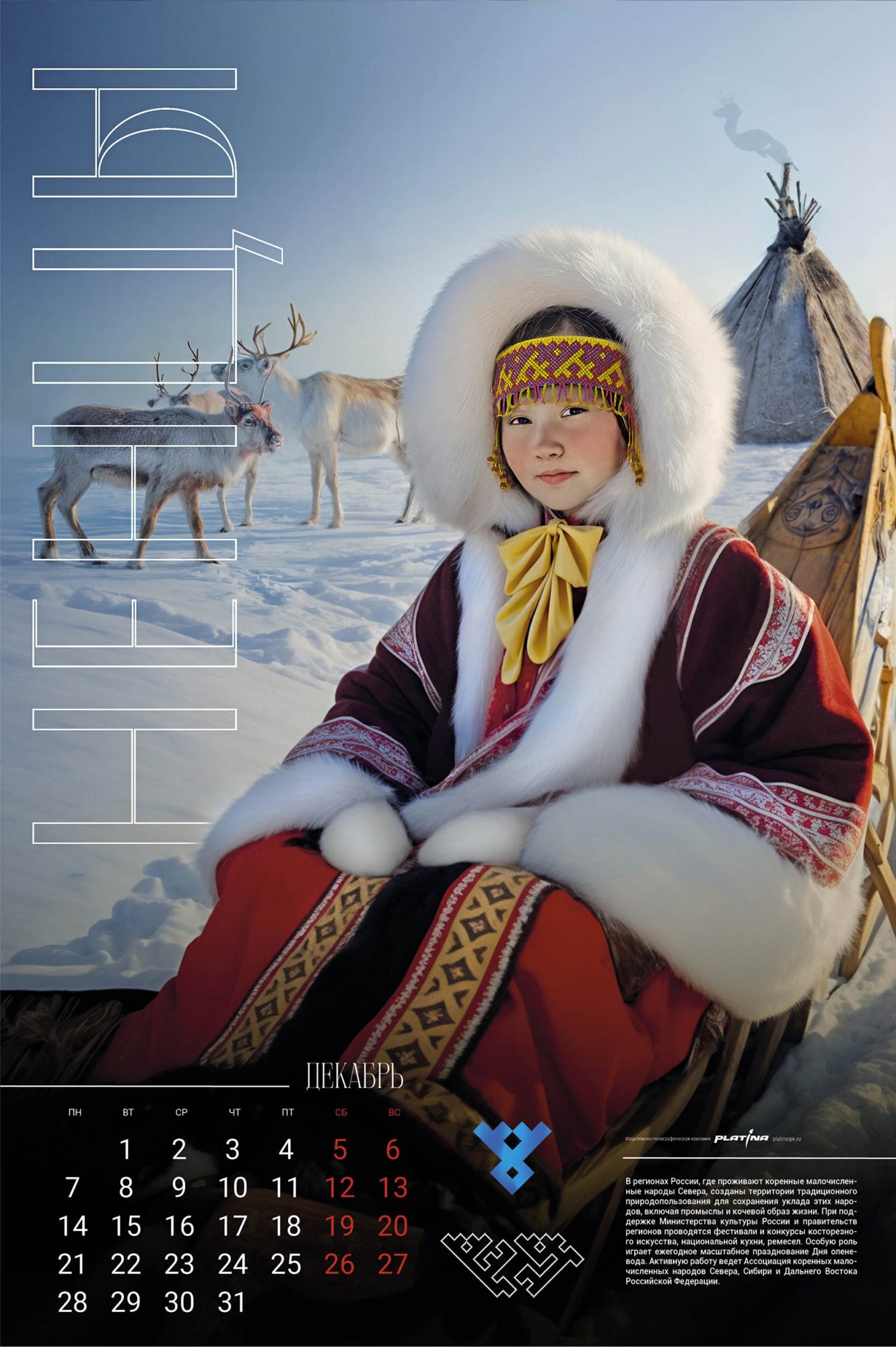 Каждый месяц календаря знакомит нас с представительницей одного из народов страны. При создании проекта была проведена большая работа по поиску аутентичных костюмов и составлению образов, раскрывающих национальные особенности. Иллюстрации были сгенерированы с использованием искусственного интеллекта, после чего прошли этап тщательной художественной пост-обработки и доработки дизайнером для достижения большей выразительности и достоверности.