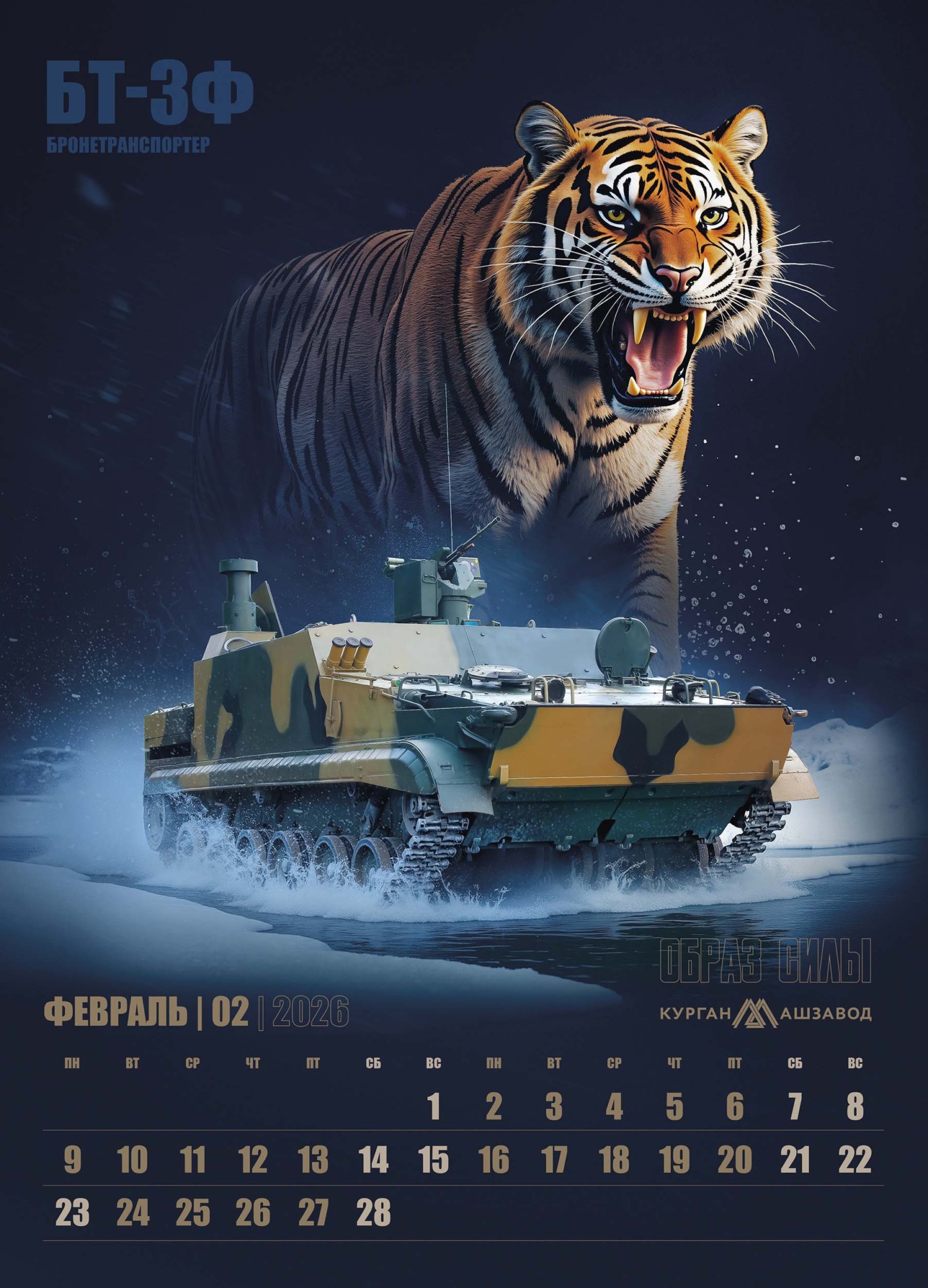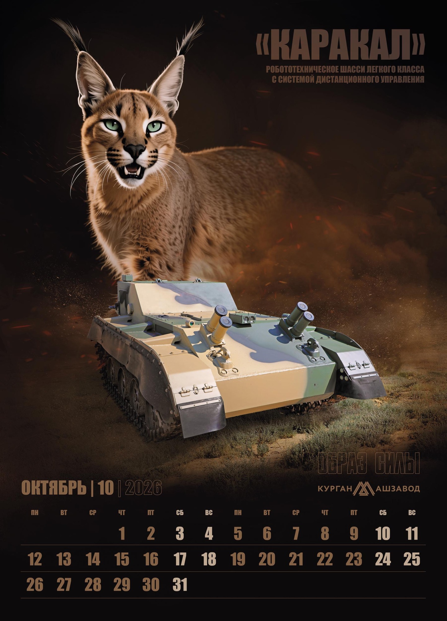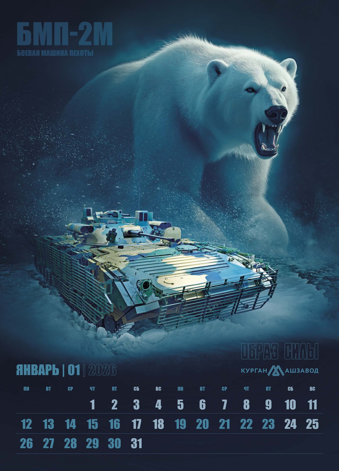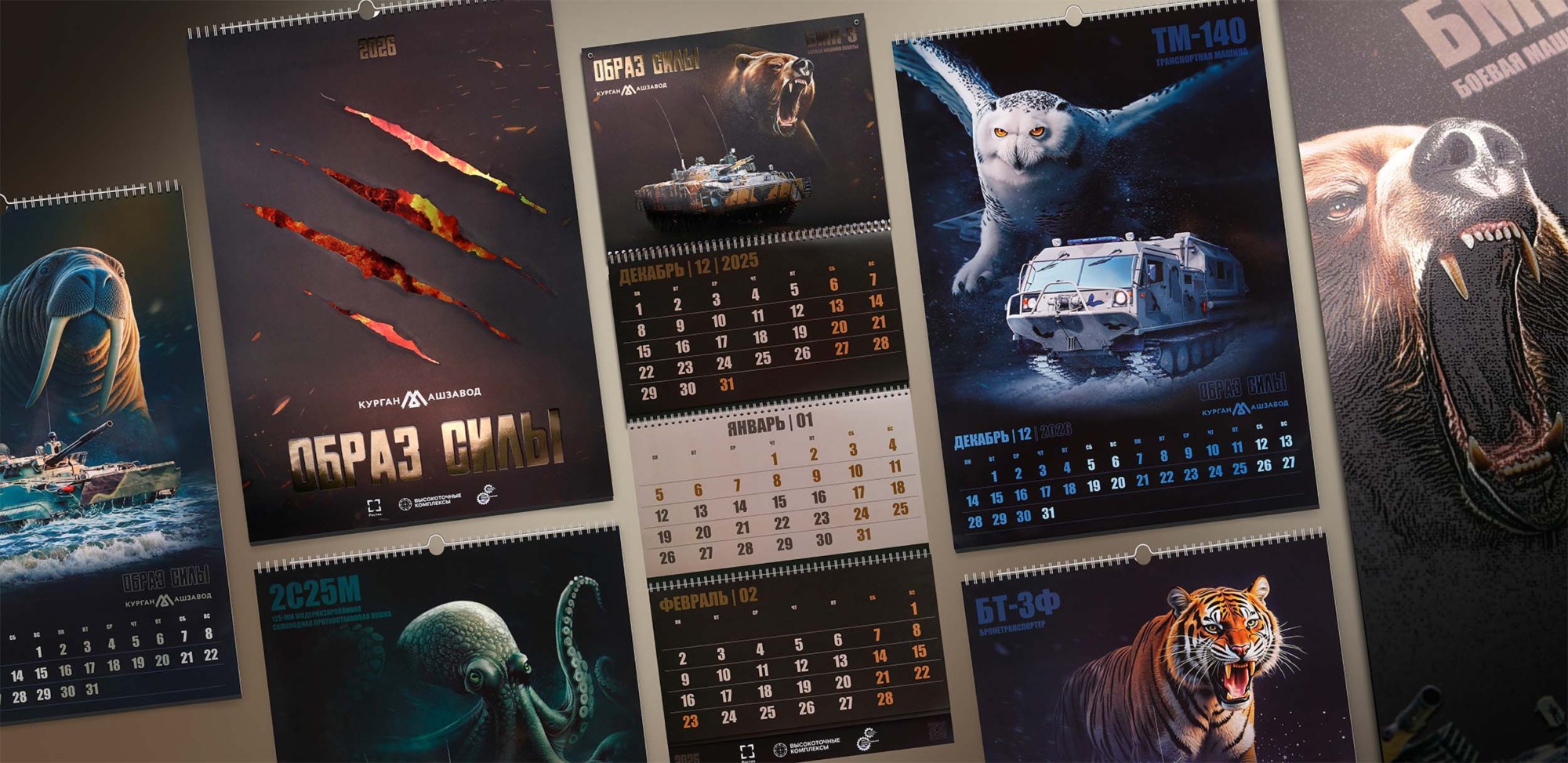 В основу календаря легла мощная визуальная метафора, где боевая техника обладает не просто техническими характеристиками, но и истинным характером, роднящим её с представителями дикой природы. На страницах календаря машины Курганмашзавода обретают дух могучих животных, уверенно чувствующих себя в своей среде обитания.