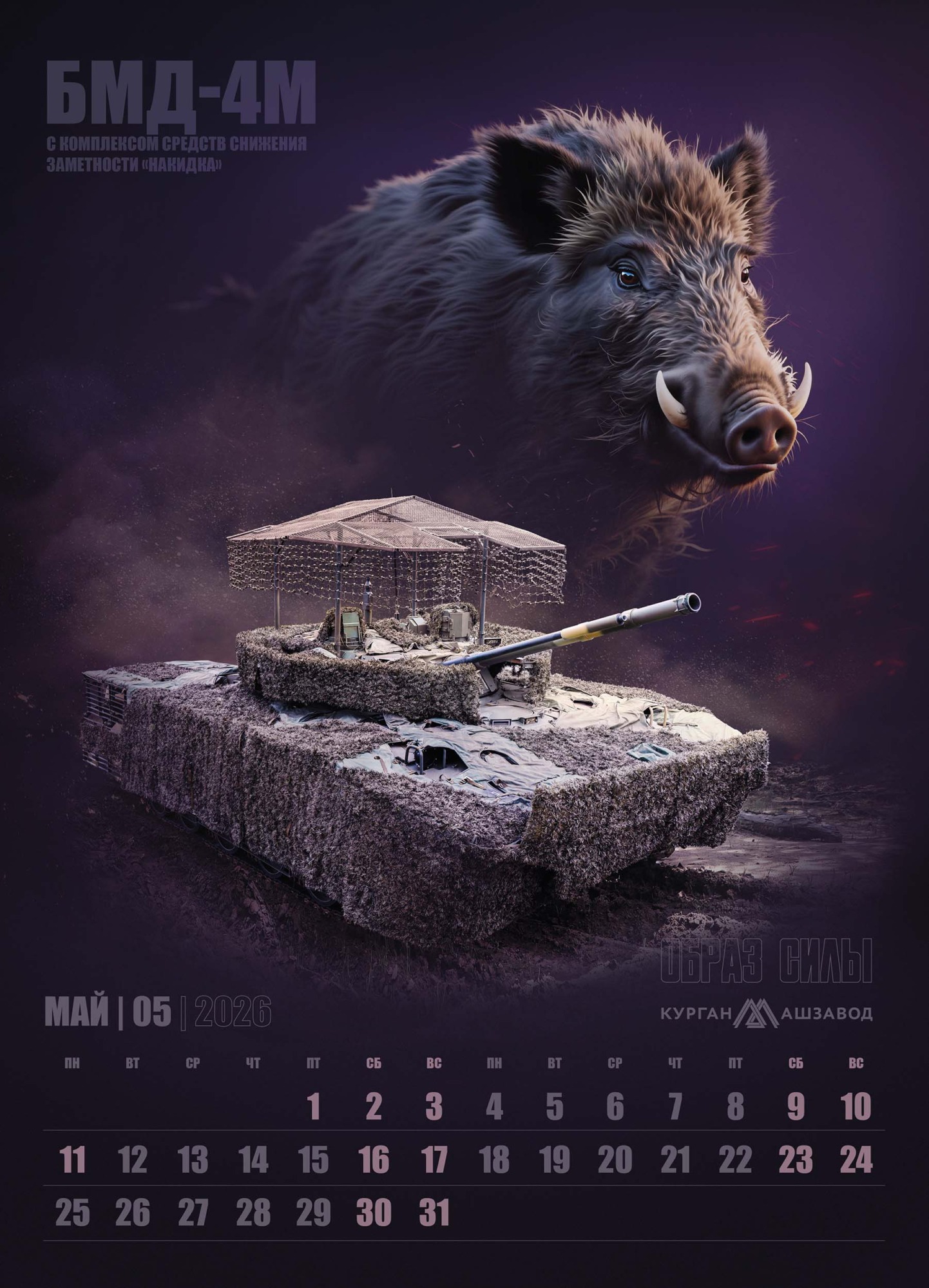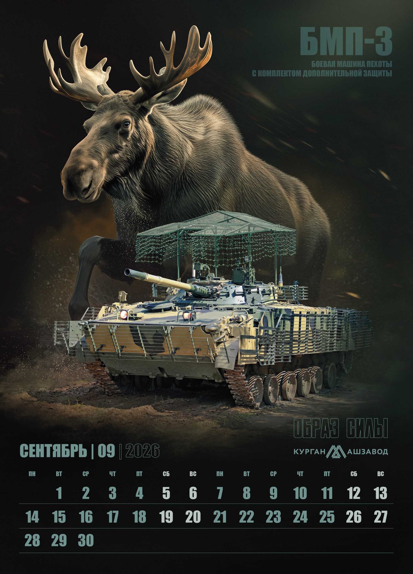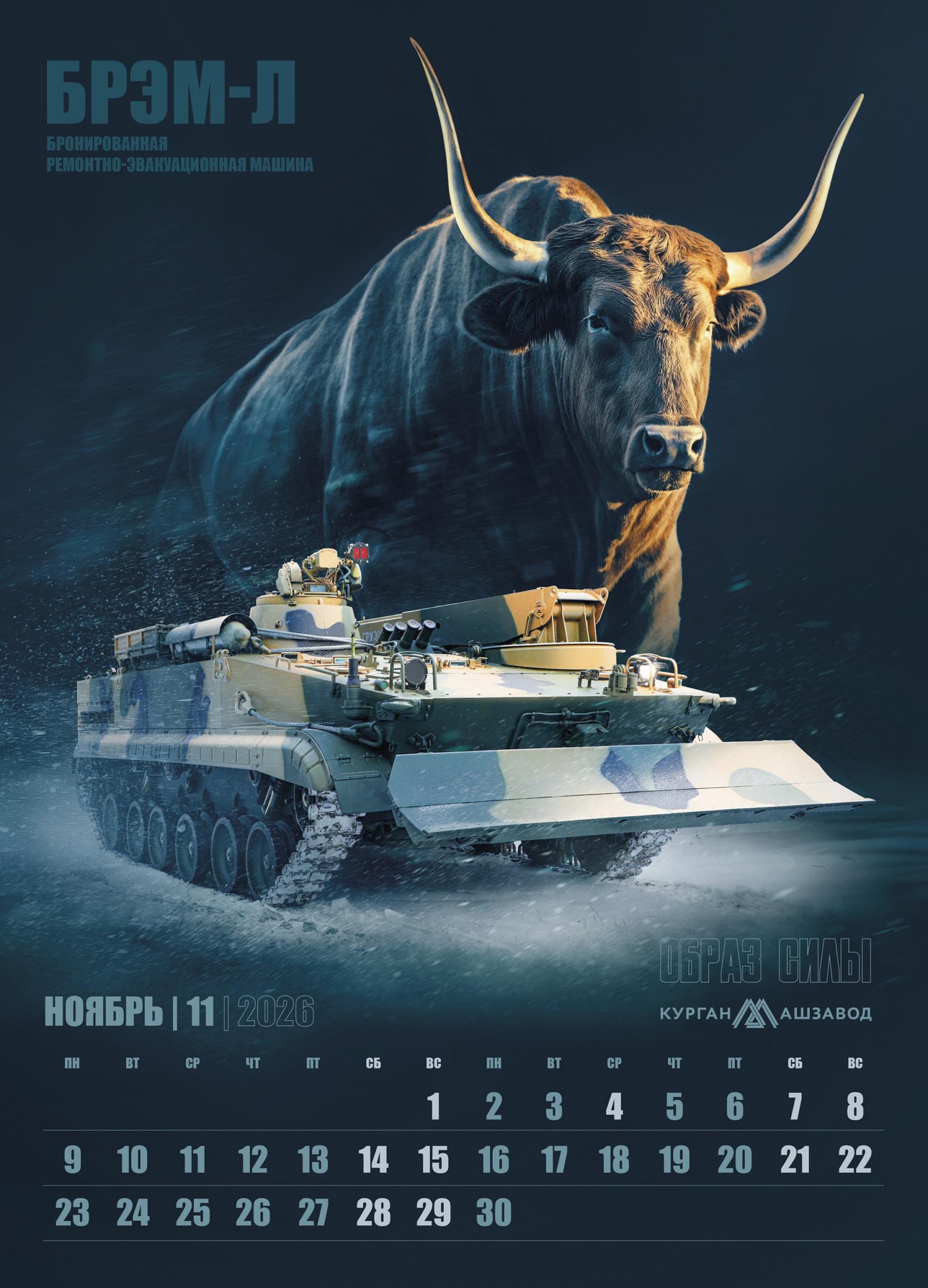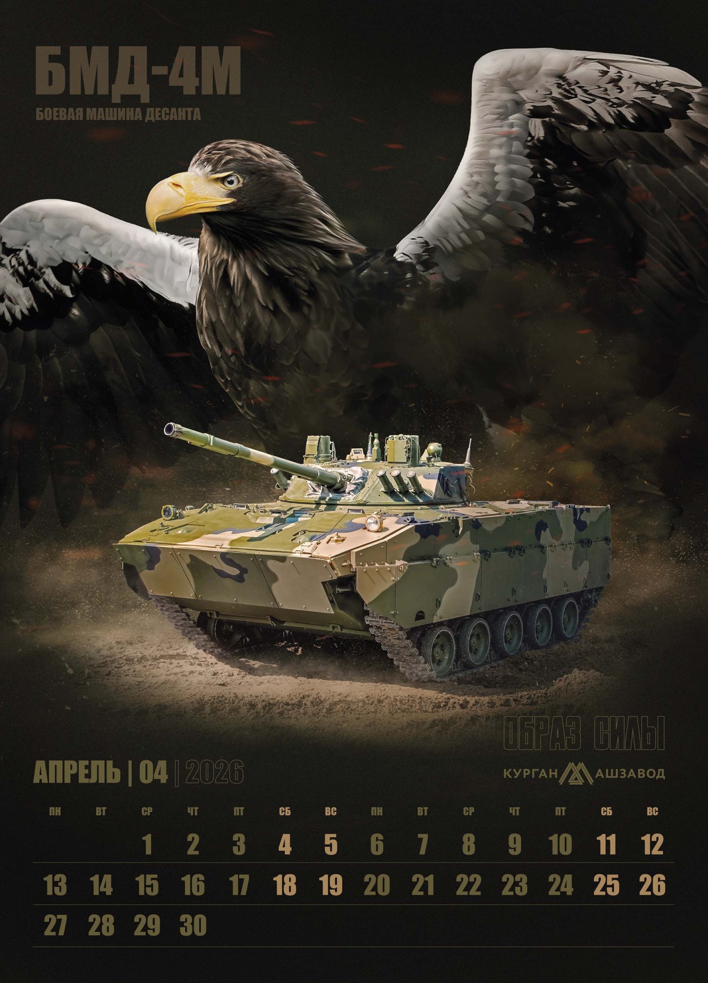 В основу календаря легла мощная визуальная метафора, где боевая техника обладает не просто техническими характеристиками, но и истинным характером, роднящим её с представителями дикой природы. На страницах календаря машины Курганмашзавода обретают дух могучих животных, уверенно чувствующих себя в своей среде обитания.