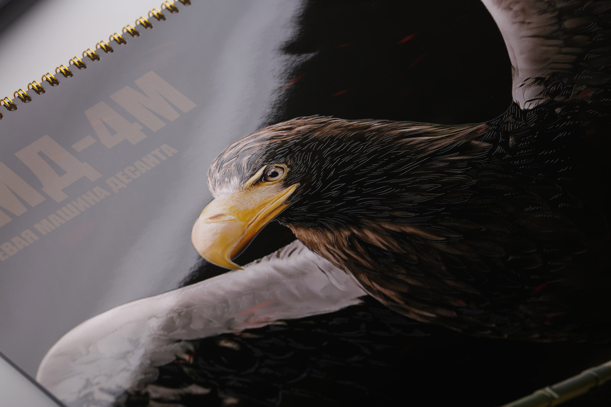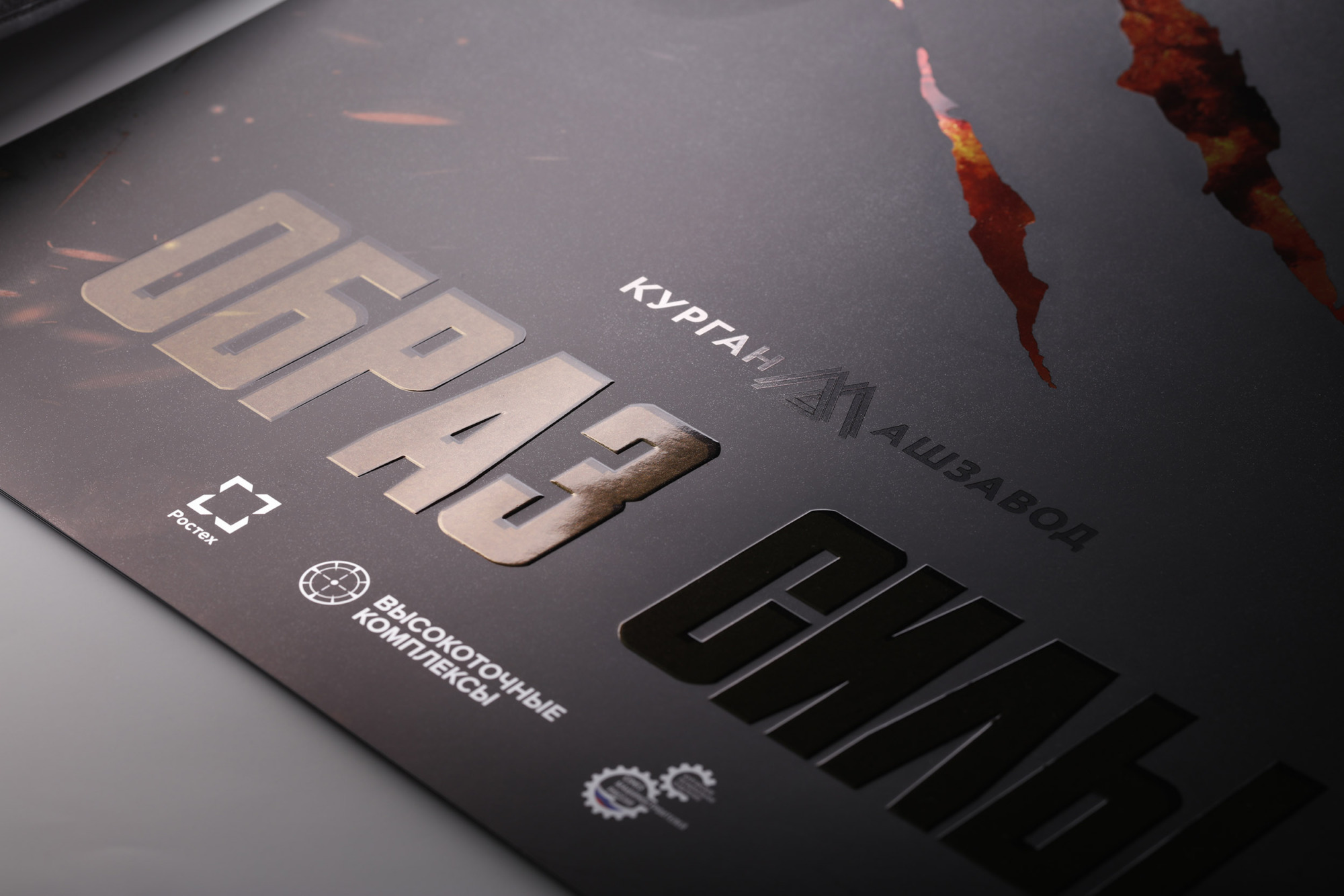 Ключевую роль в передаче мощи визуальных образов сыграло полиграфическое исполнение. Особое внимание уделено обложке настенного и топ-слайду квартального календаря. Для создания «стального» эффекта применена комбинация металлизированного и матового ламинирования. На полосах календаря использована сложная комбинация глянцевого и абразивного УФ-лаков, нанесенного художественным методом. Слоган проекта ярко выделен на изделии за счет технологии конгрев.