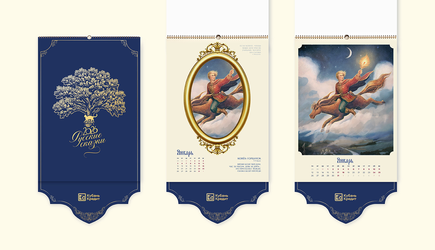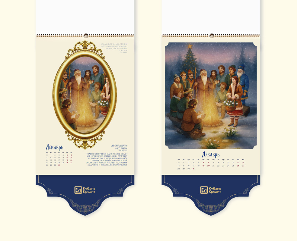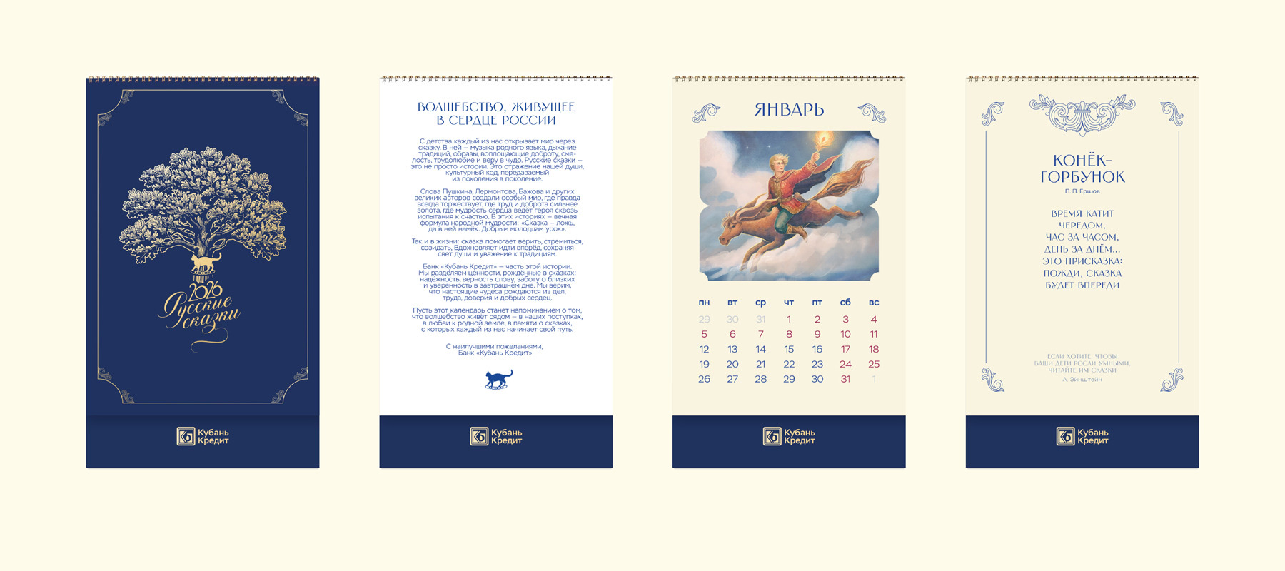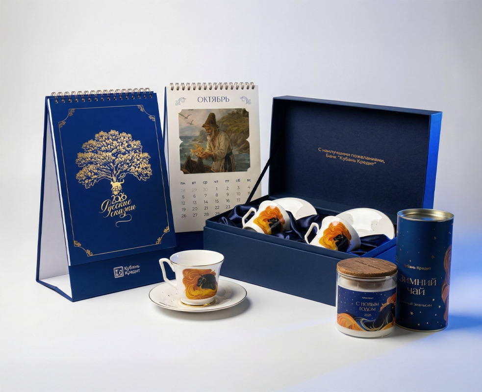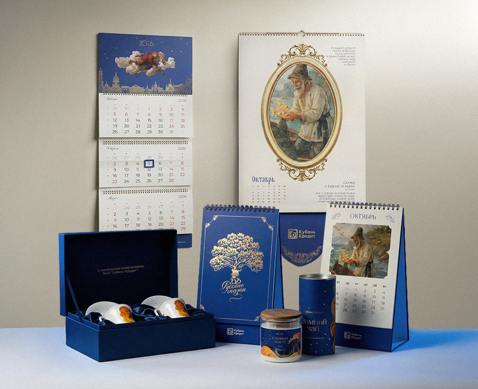 Сердцем этого проекта стал корпоративный календарь Банка «Кубань Кредит», иллюстративные образы и стилистика которого легли в основу коллекции новогодней сувенирной продукции Банка.