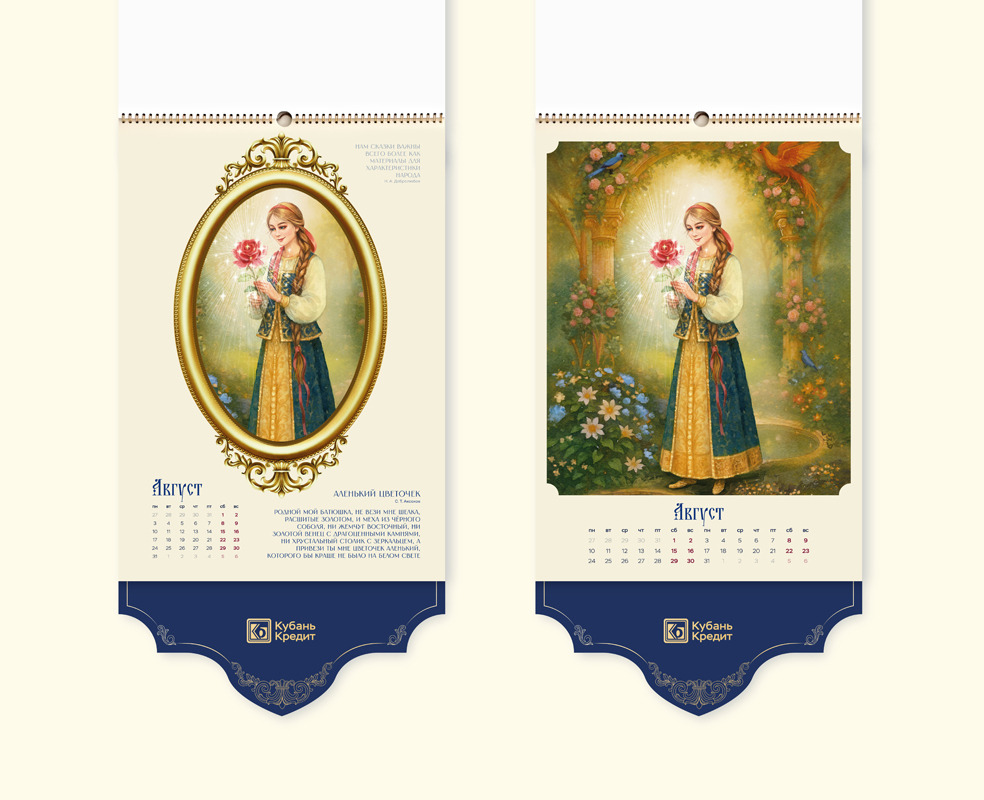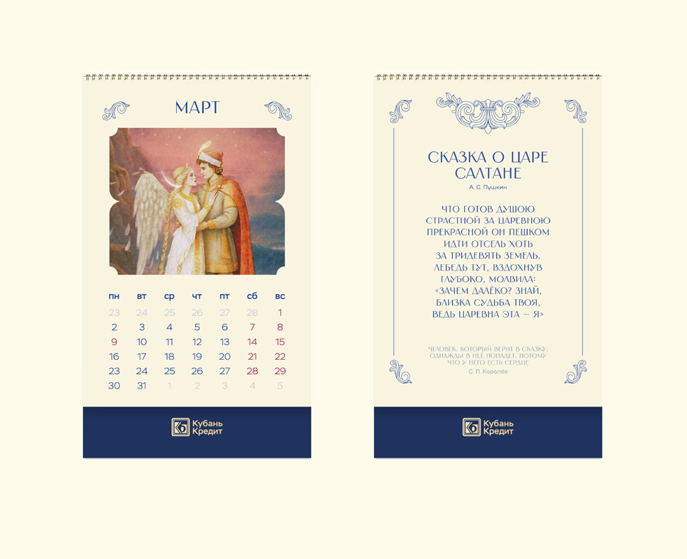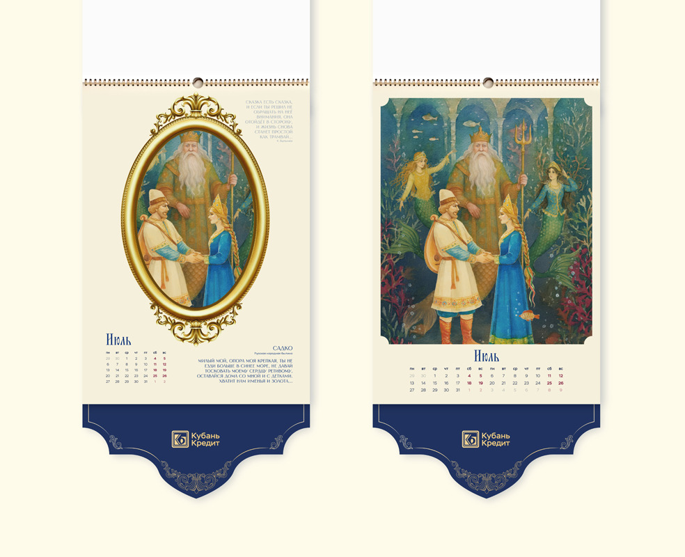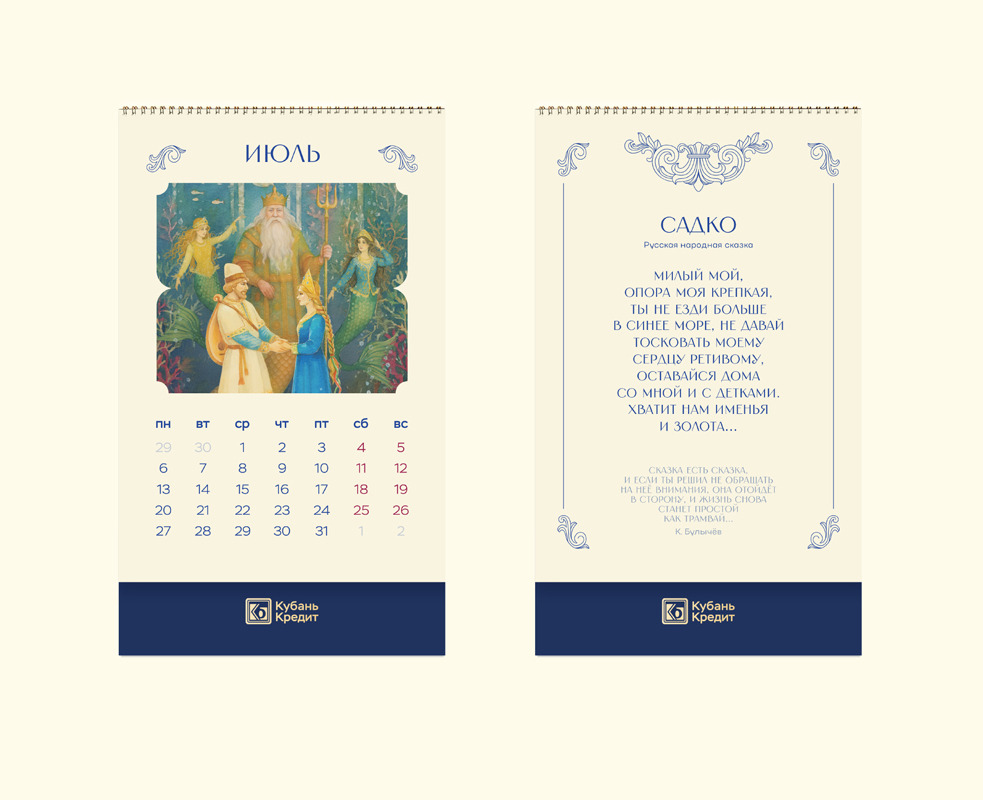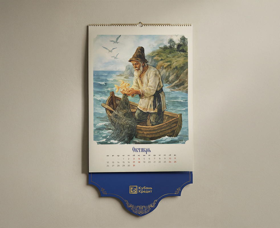 Сердцем этого проекта стал корпоративный календарь Банка «Кубань Кредит», иллюстративные образы и стилистика которого легли в основу коллекции новогодней сувенирной продукции Банка.