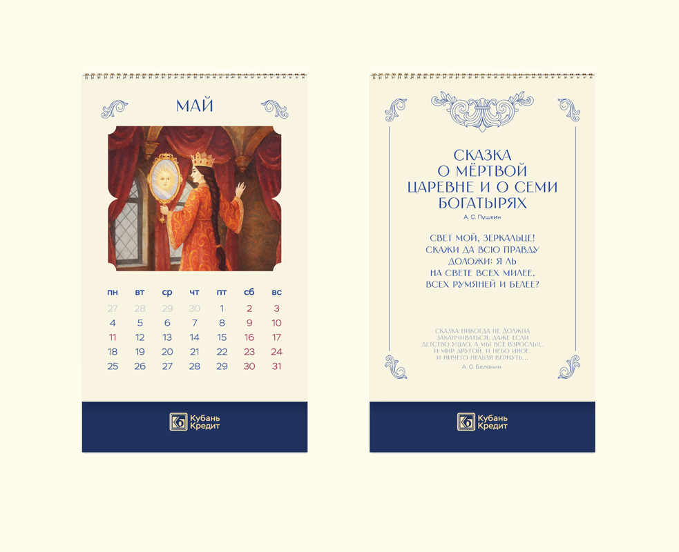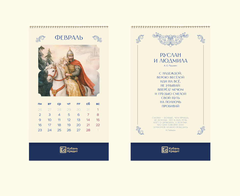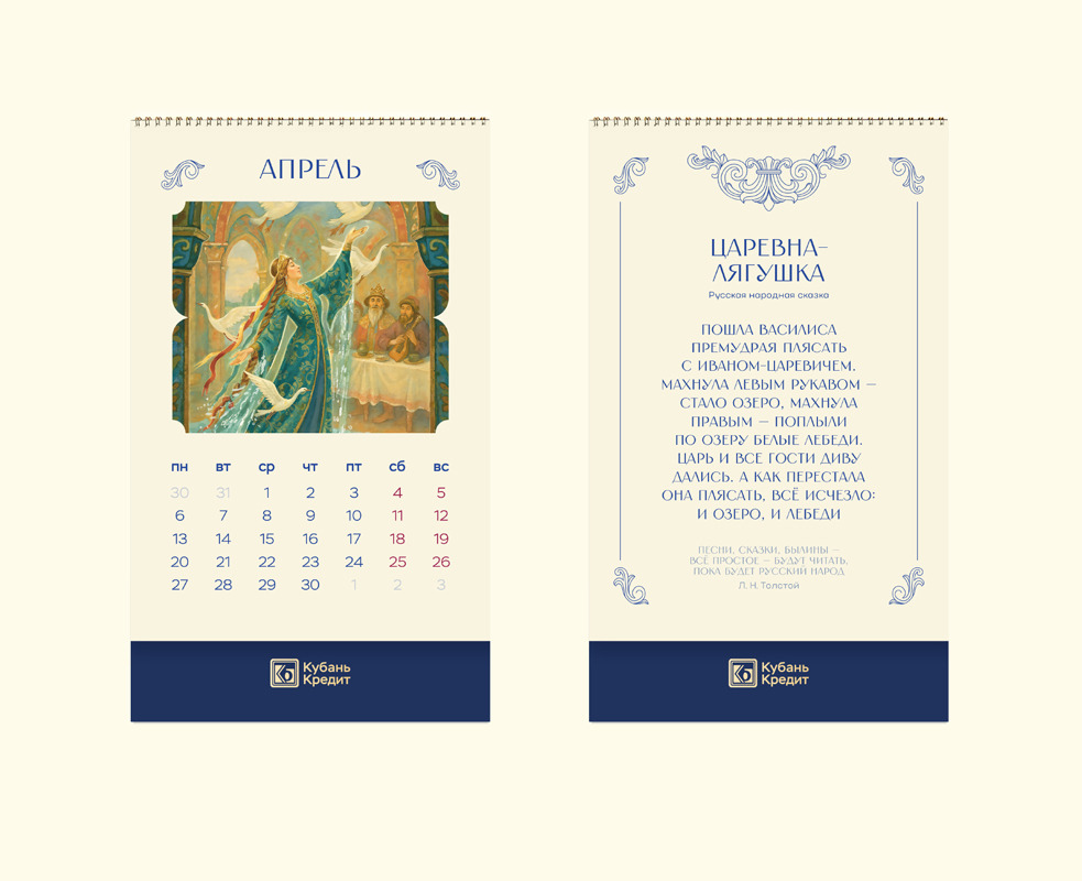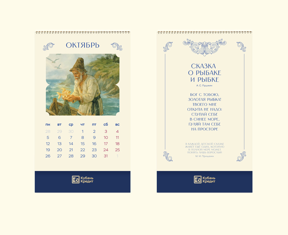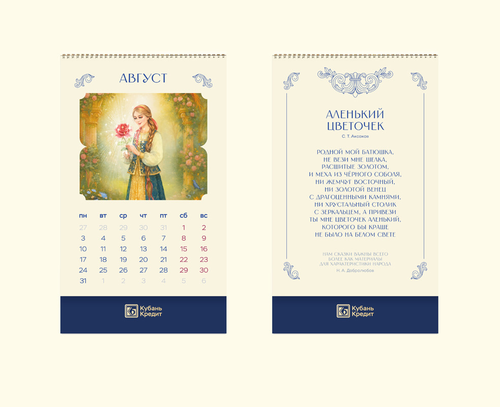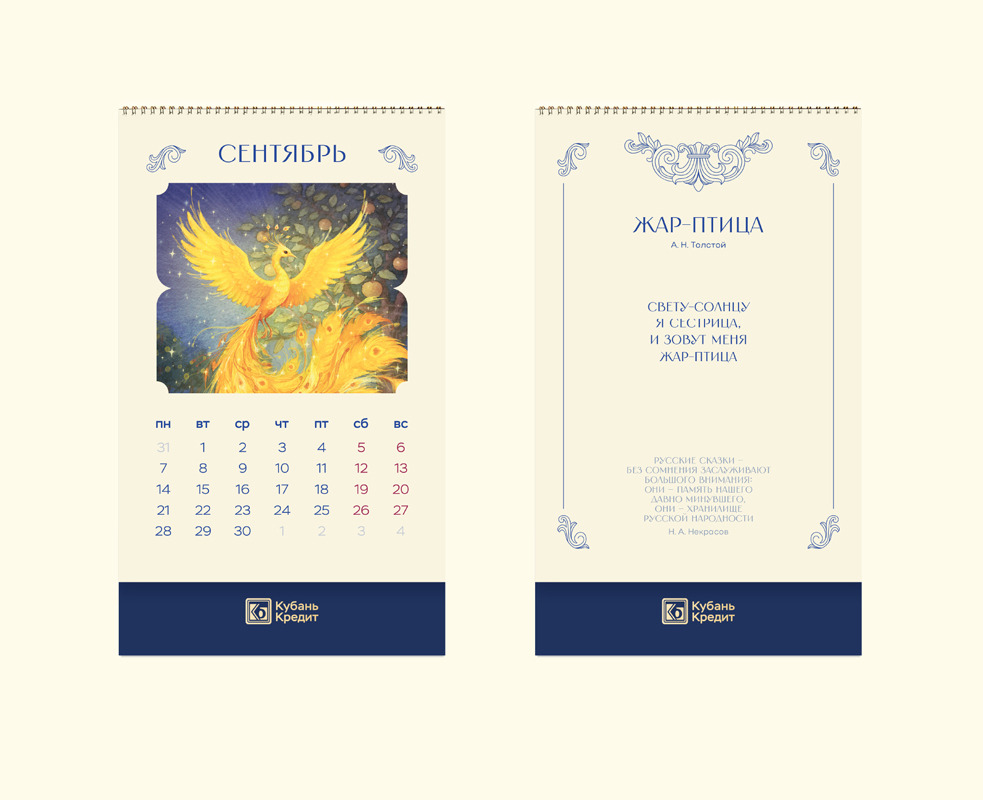 Сердцем этого проекта стал корпоративный календарь Банка «Кубань Кредит», иллюстративные образы и стилистика которого легли в основу коллекции новогодней сувенирной продукции Банка.