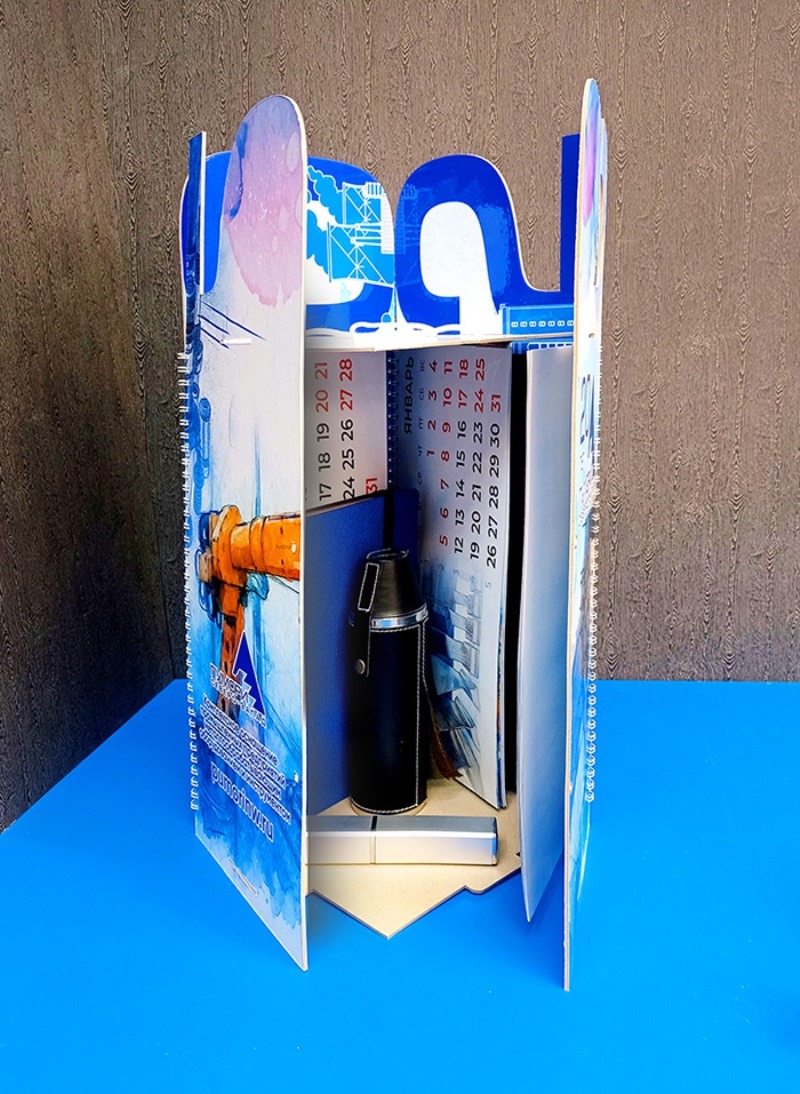 ООО «Лабиринт» в данном календаре-футляре идеально передает ценности и характер предприятия, совмещая приятное впечатление от неожиданного подарка с практической пользой повседневного аксессуара. Таким образом, разработанный календарь становится символом философии компании: точность, надежность и внимание к каждому клиенту.
