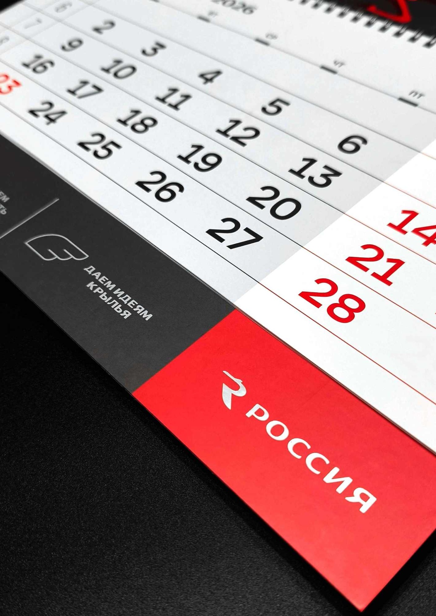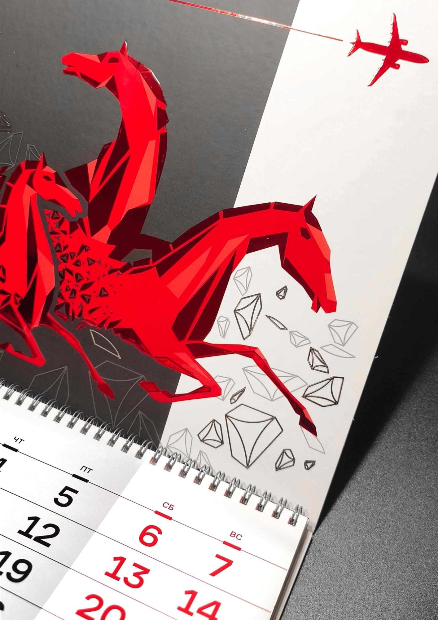 Фактурность материалов и тактильные эффекты усиливают эмоциональное восприятие календаря: зритель не только видит динамику, но и буквально ощущает ее. Дополнительные технологии используются гармонично – не перегружают композицию, а работают на раскрытие идеи.