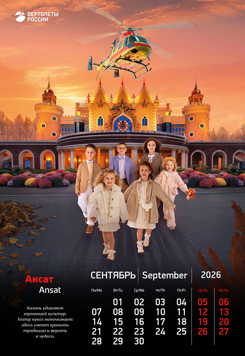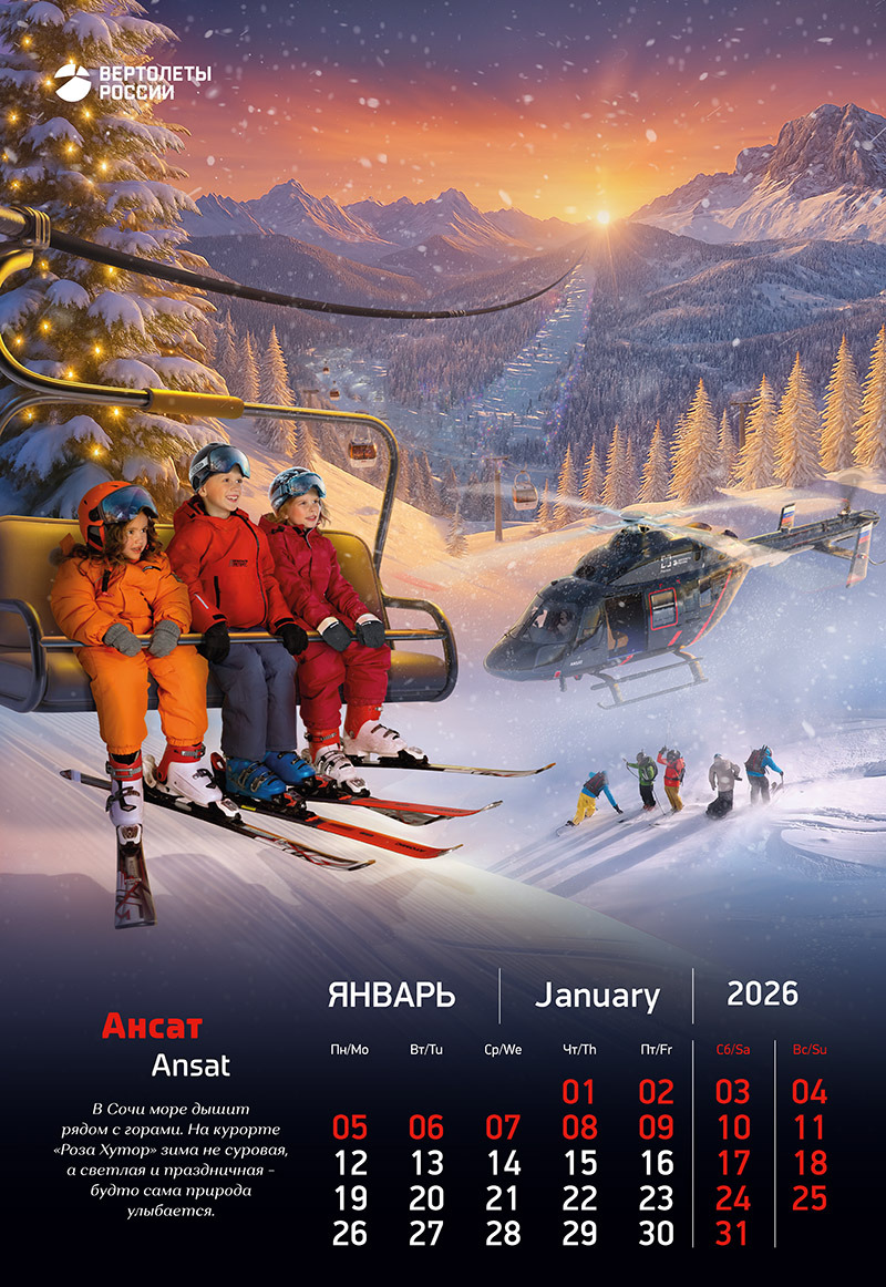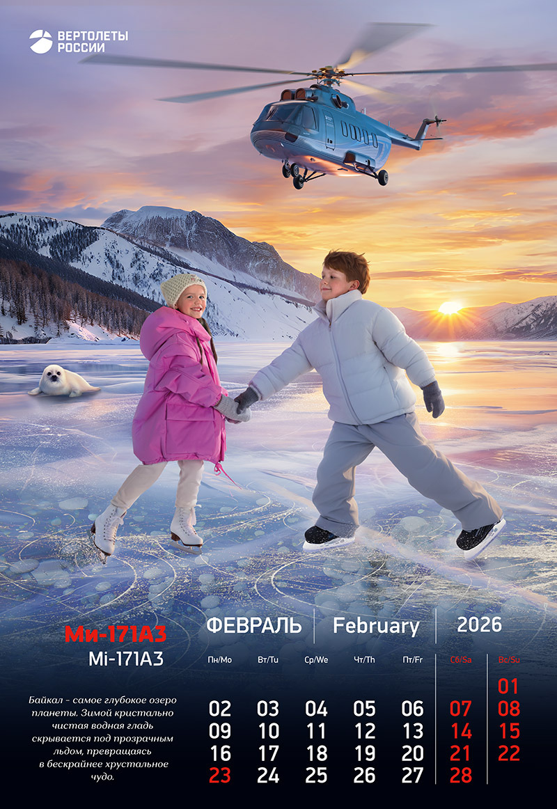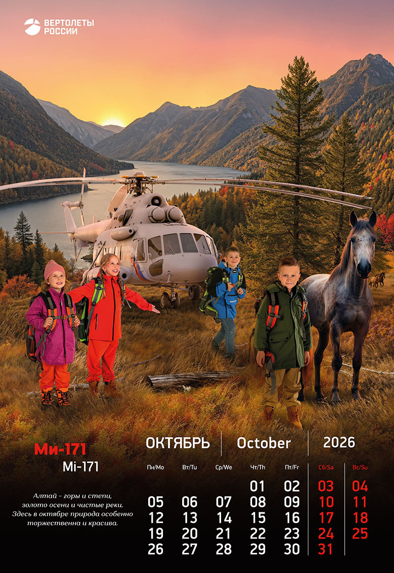 Календарь на 2026 год стал для нас амбициозным творческим экспериментом, объединившим передовые технологии вертолетостроения, красоту родной природы и искренние детские эмоции.