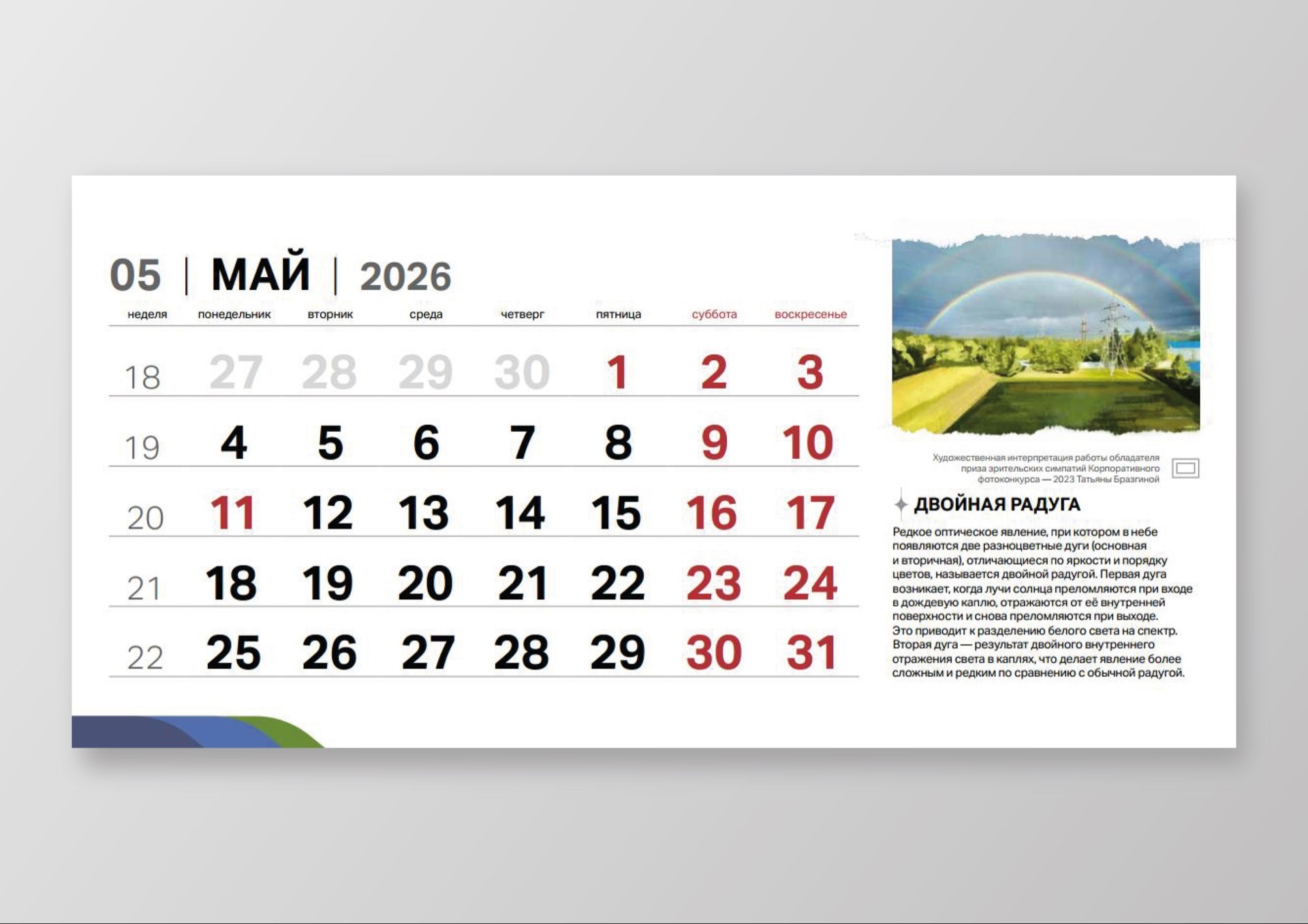 В основе календаря – художественная интерпретация любительских работ от участников корпоративного фотоконкурса и промышленные снимки от профессиональных фотографов.